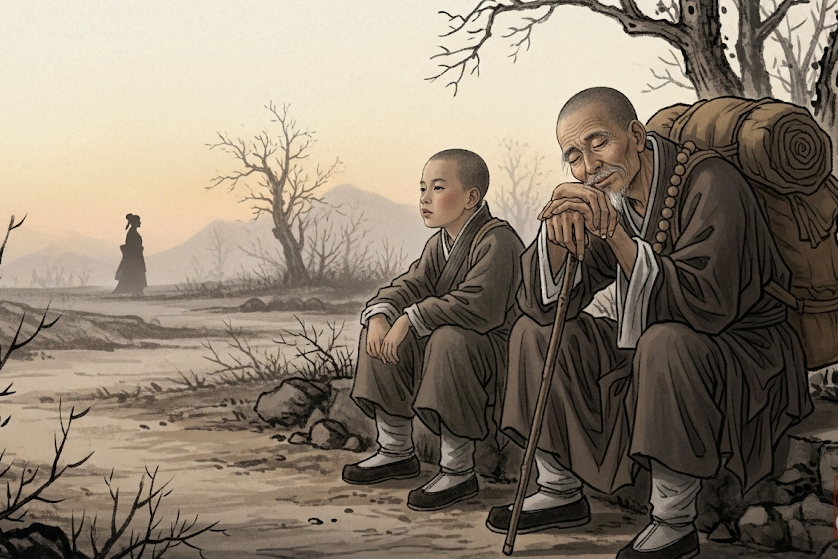Đi mãi cũng đã nửa ngày, thế nhưng thiền sư không những không nghỉ ngơi mà còn đi càng lúc càng nhanh. Mãn Không phải rảo bước theo sau, mệt đến mức gần như đứt hơi.