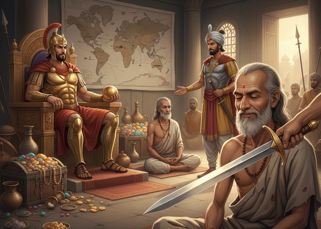 Một ngày nọ, ông đem quân đi xâm chiếm Ấn Độ và giành được kinh thành. Ông ấy gặp vua nước Ấn Độ, ông nói: