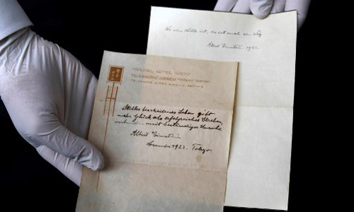Hai tờ giấy được thiên tài vật lý Albert Einstein dùng để mô tả về cách sống hạnh phúc đang được bán đấu giá ở Jerusalem.
