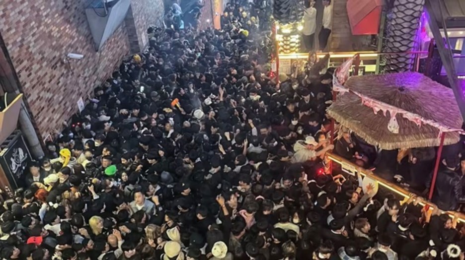 Dòng người cùng đổ vào con hẻm bên cạnh khách sạn Hamilton, phố Itaewon (Seoul, Hàn Quốc), trước khi thảm họa xảy ra vào đêm 29/10. Ảnh: Reuters