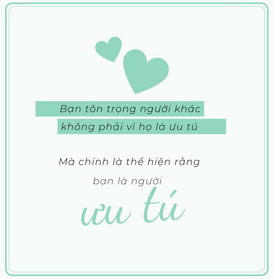 Có thể nói, “tôn trọng” người khác cũng không phải là sự lễ phép xã giao mà nó đến từ sự hiểu, thông cảm và kính trọng người khác được ẩn sâu ở trong tâm hồn mỗi người. Tôn trọng ấy không có hàm chứa bất cứ sắc thái lợi ích nào, cũng không bị ảnh hưởng bởi thân phận hay địa vị, đó mới là nét đẹp thuần túy nhất, chất phác nhất và cũng là sự báo đáp đáng giá nhất.