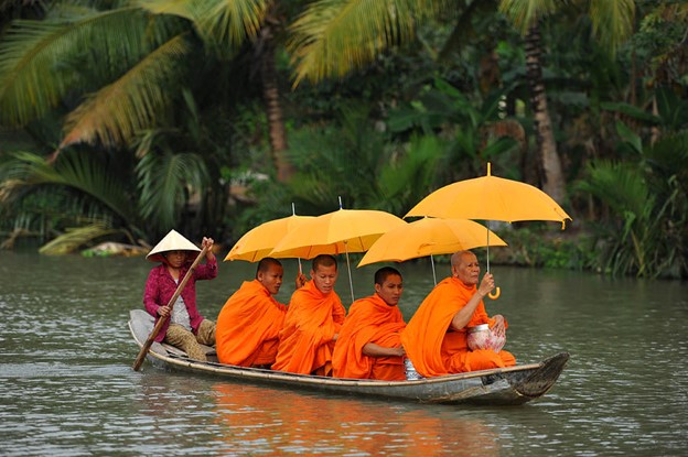 Rồi một vài con thuyền nhận ra đâu là bến đỗ nên mới quay đầu, đạp sóng, vượt gió trở về cội nguồn. Chấp nhận nghịch lưu, quay lưng với trần gian, bỏ lại sau lưng bọt bèo và rác rưởi, thuyền đời xuất gia lầm lũi tiến lên. Đi ngược dòng thế gian thì khó khăn bội phần nhưng thênh thang, trống trải.