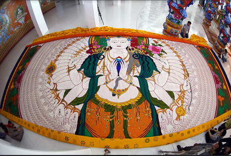 Bức tranh cuộn Phật Quan âm kích cỡ 11,8 ×16 m, là kiệt tác nghệ thuật Phật giáo Vương quốc Bhutan do Đức Gyalwang Drukpa ban tặng Đại Bảo tháp Mandala Tây Thiên nhân 10 năm ngài tới thăm Việt Nam. Bức tranh thêu trên gấm (thongdrol) này nặng trên 100 kg, được thêu dệt bằng gấm và chỉ thêu cao cấp, được sáng tác trong thời gian 6 tháng.