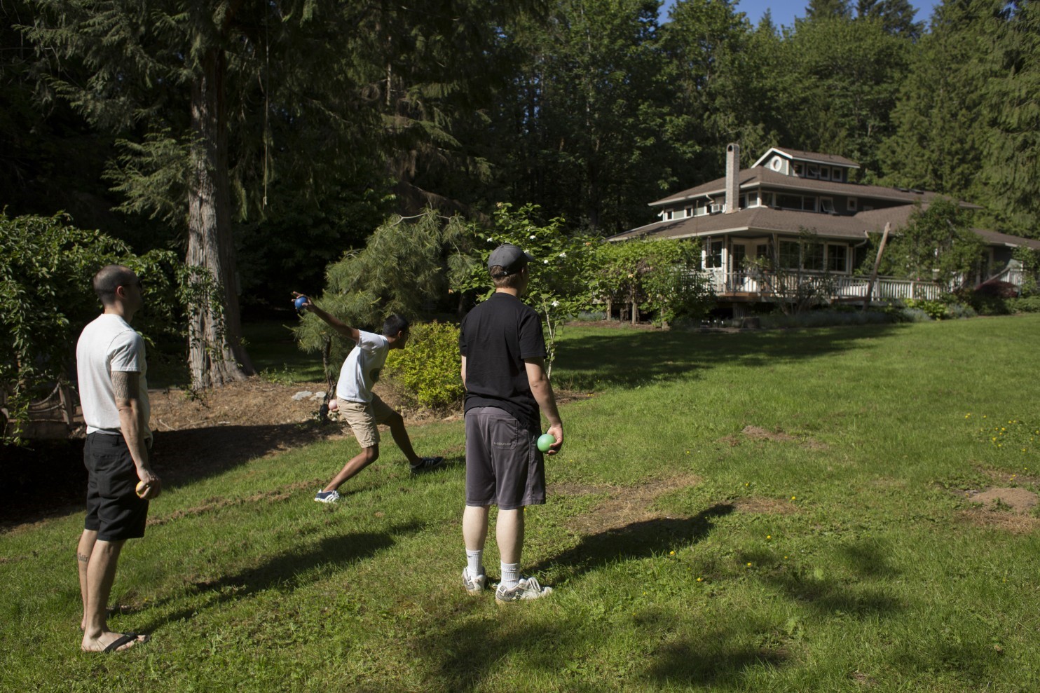 Anthony (trái) và Nikhil đang chơi tại Restart, một trung tâm ‘cai nghiện internet’ tại Fall City hồi tháng 5 vừa qua.
