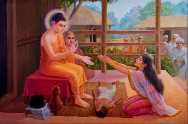 Người mẹ đi khắp vùng, gõ cửa từng nhà và đã tìm ra câu trả lời cho mình: trên thế gian này, nhà ai cũng đều có người thân chết. Cái chết đến với con mình cũng là một sự thật hiển nhiên, buộc phải xảy ra, không thể tránh khỏi.