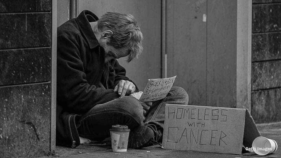 "Không, tôi không sao hết". Người vô gia cư trả lời với đôi mắt đượm buồn, đầy nước mắt.