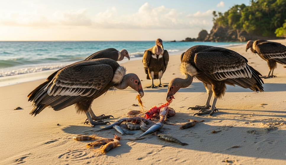Vài tháng sau, một chiếc tàu cập bến, và từ đó, người ta thả những con báo lên đảo. Ban đầu, đàn báo không để ý, nhưng rồi chúng nhận ra điều đáng kinh ngạc: bầy kền kền này không còn biết bay.
