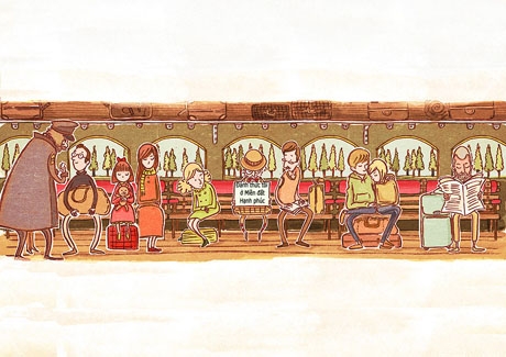 Cô bé ngây thơ tưởng rằng chuyến tàu này sẽ dừng lại ở Miền đất Hạnh phúc. Chưa kịp nghe ông cụ trả lời, cô bé đã chạy lại khoe với cha mẹ: “Cha! Mẹ! Chúng ta sắp đi tới Miền đất Hạnh phúc đấy!”.