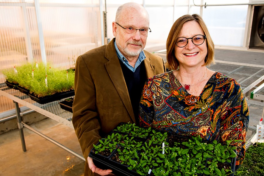 GS Jack Schultz (trái) cùng đồng sự Heidi Appel và các cây mô hình được sử dụng trong nhiều thí nghiệm của họ. (Ảnh: LSC)