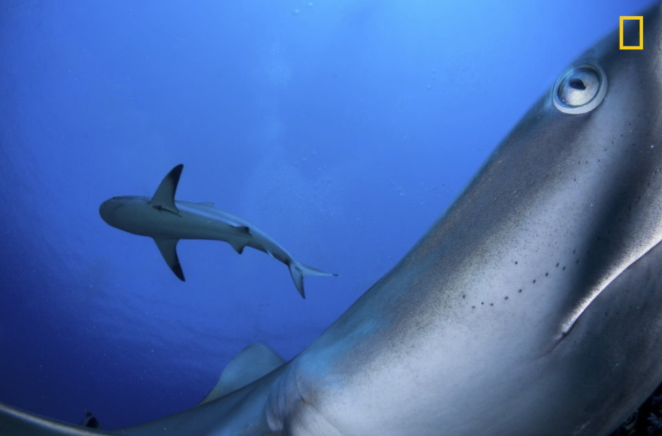 Giải khuyến khích: Trực diện - Shane Gross. Cận cảnh cá mập vùng biển Caribe được chụp bằng bộ điều khiển từ xa.