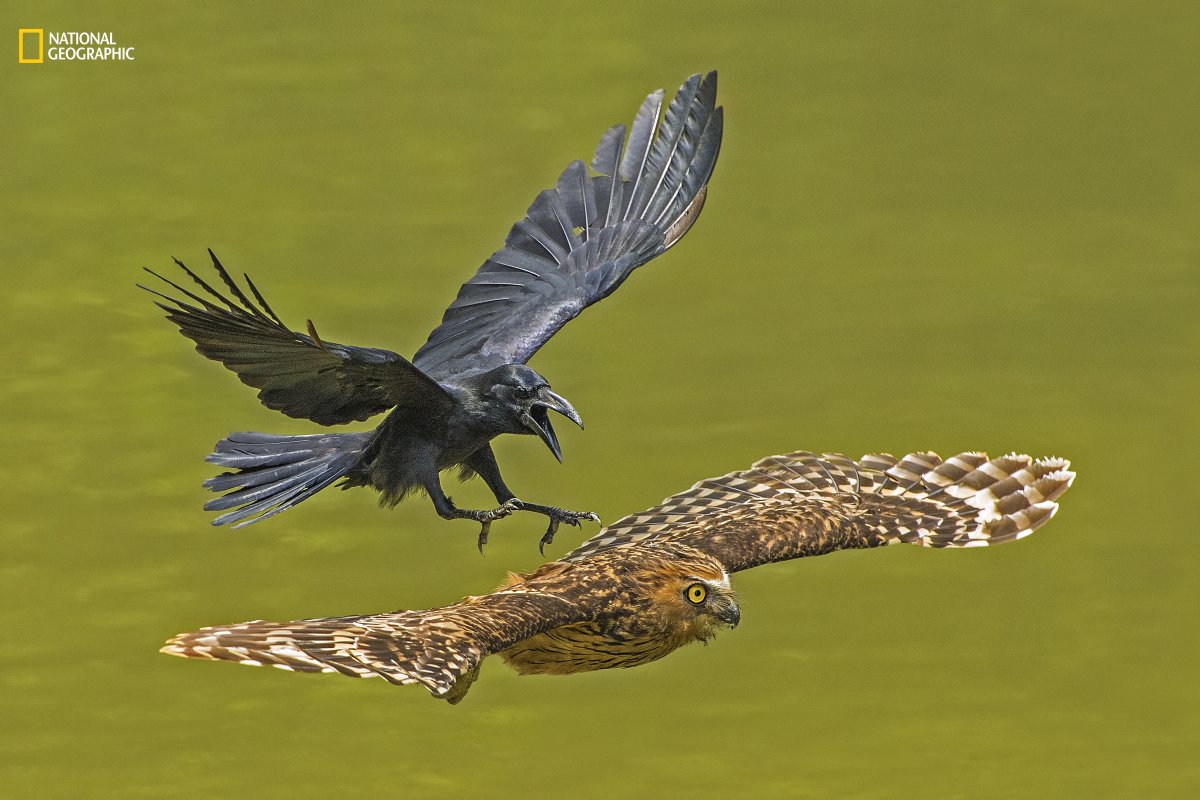 Một con quạ hung hăng đuổi theo một con cú lớn ngay trước mặt tôi. Màn rượt đuổi giữa một sinh vật ban ngày và ban đêm kéo dài chưa đầy hai giây và mô tả sống động thiên nhiên kỳ thú, không giới hạn.” – tác giả Lawrence Chia Boon Oo chia sẻ.
