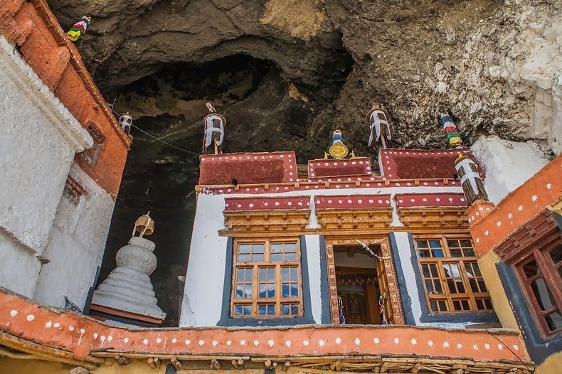 Tự viện có lối kiến trúc độc đáo với sự kết hợp giữa bùn và gỗ, xây dựng ở lối vào một hang động tự nhiên trên vách đá của hẻm núi nằm bên sông Lungnak. Đứng nhìn từ xa, tự viện trông giống như 1 tổ ong khổng lồ.