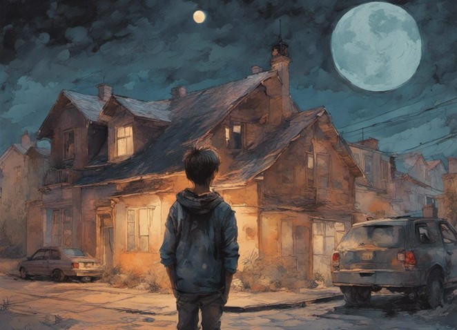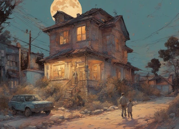 Trong khi tên trộm chuẩn bị ra tay thì bỗng nhiên đứa con ngoài cổng la lớn: “Cha ơi! Có người đã thấy chúng ta rồi!” Tên trộm nghe thế, vội kéo theo đứa trẻ chạy trốn. Chạy được một đoạn khá xa, tên trộm mới đứng lại hỏi cậu bé: “Hồi nãy ai đã thấy chúng ta?” Đứa con trả lời: “Là ánh trăng đang thấy chúng ta cha ạ!”…