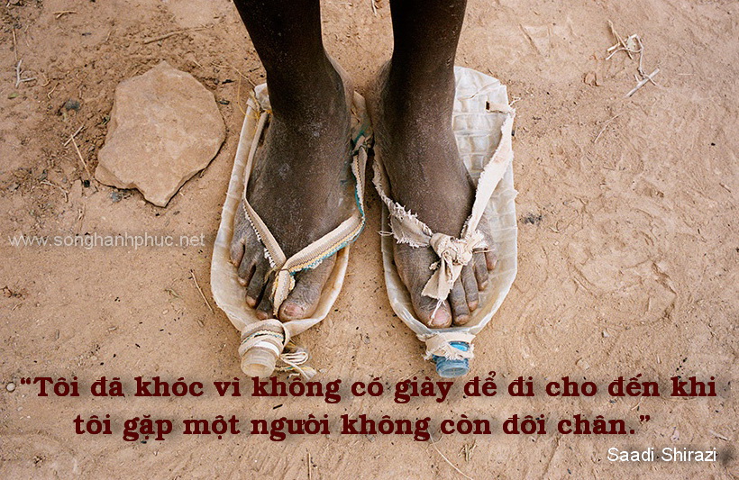 Thi sỹ Saadi Shirazi từng nói: “Tôi đã khóc vì không có giày để đi cho đến khi tôi gặp một người không còn đôi chân.”