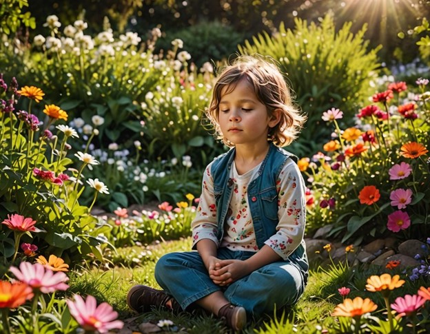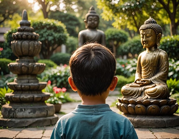 Tuổi thơ có Phật còn là những ngày tháng yên bình, khi đứa trẻ được dẫn dắt học cách quay về với hơi thở và cảm nhận hiện tại. Thông qua các bài học về chánh niệm, trẻ học cách quan sát bản thân và những gì đang xảy ra xung quanh. Chúng hiểu rằng hạnh phúc không nằm ở những điều to lớn, mà chính là sự bình an và niềm vui trong từng khoảnh khắc hiện tại. Những giây phút chơi đùa trong khu vườn, hay lắng nghe tiếng chim hót, tất cả đều trở nên sâu sắc và ý nghĩa hơn khi tâm trí được nuôi dưỡng bởi Phật pháp.
